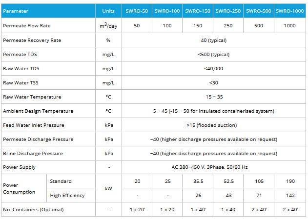 The MAK SWRO plants are available as skid mounted or containerised systems.