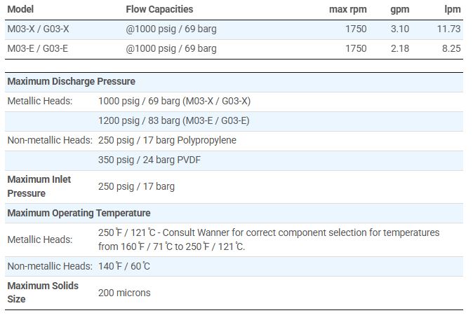 - 350 psig / 24 barg for Non-metallic Pump Heads