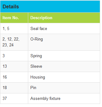 Single seal configuration. Balanced design. Independent of direction of rotation. Semi-Cartridge construction. No dynamic O-Ring on the shaft.