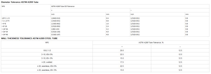 inside diameter and larger and 0.020 in. (0.51 mm) in nominal wall-thickness and heavier. Mechanical property requirements do not apply to tubing smaller than Va in. (3.2 mm) in inside diameter or 0.015 in. (0.38 mm) in thickness.