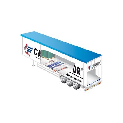 Bodywork welded to lower longitudinal body beams. The Cargo Floor system consists of 21 alu profiles supported by double-T crossbeams at a distance of 350mm. Laterals are constructed by alu body planks from 300 up till 600 mm wide, welded between upper and lower profiles. Chassis structure made of double -T profiles which match with longitudinal lower profiles.