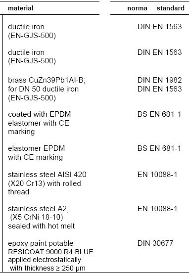 Unimpeded direct passage. Closing torque lower than the acceptable of standard. Gate covering - NBR/SBR, with CE marking. Stem - AISI 316 L, AISI 303, or others. Other diameters. Valves for working at temperatures over 70°C.