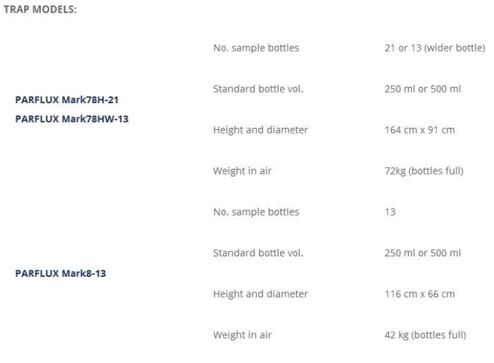 - Mark 78H Sediment Traps have 13 or 21 sample bottles of 250ml or 500ml.