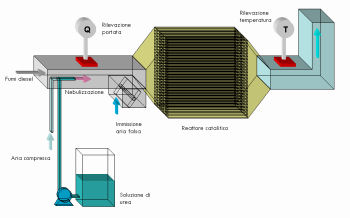The process of selective catalytic reduction of nitrogen oxides, better known as "SCR Process", allows you to delete a quantitative NO and NO 2 from the gaseous emissions, turning them into inert compounds to the environment, such as nitrogen and water vapor.