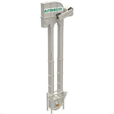ALTINBILEK Self-Cleaning Bucket Elevator is designed for upward transport of powder and grain products in an undamaged manner. With its round shaped adjustable bottom boot, it minimizes the mixing of the transported products and provides upward transport. The distance between the buckets and the bottom can be adjusted quickly, easily, and precisely. This prevents material accumulation at the bottom. It is ideal for the grain, pulse, and feed industries. It has a completely closed and impermeable structure. It consists of a upper boot where feeding is made, a vertical tubing, and a lower boot.