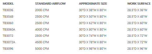 DualDraw - Model TB Series -Self Contained Downdraft Booths