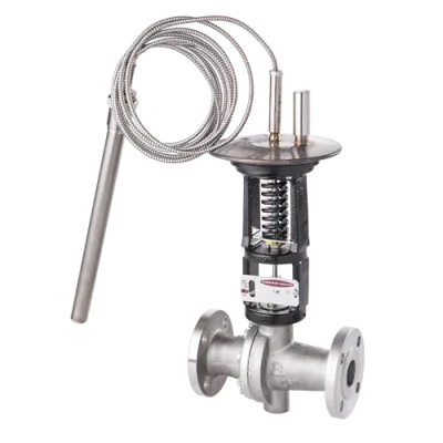The Mark 80 Series is completely self-operated and requires no external power source or other expensive instrumentation to operate the valve. Depending on valve action, the seats open or close as bulb senses rise in temperature. The Mark 80 has high rangeability - controls flows from 10% to 90% of rated capacity. Available with up to 100 feet (30 meters) in capillaries.
