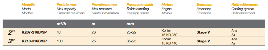 Sett-priming motor pumps made on galvanized frame with wheels and manual handh for movemtmt, motors wHh standard fud tank and recoi starter. Ideal for drainage and any other more demanding application on construction sites and in the industrial and emergency sectors. The pumping of more abrasive fluids with a high passage of solid parts is guaranteed by the robustness of the hydraulic system and the exclusive impeller, with open blades and double curvature type.