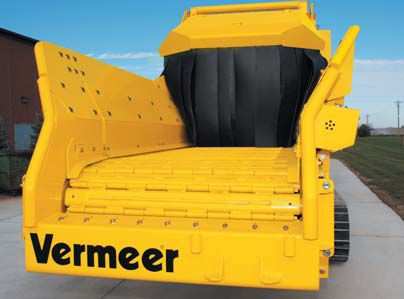 Additional productivity-enhancing features include the Vermeer-exclusive SmartGrind system and an infeed over-pressure/auto-reverse function to help prevent infeed operations from stalling due to material wedging. A 48" (122 cm) wide, V-cleat discharge conveyor is designed to smoothly exit processed material from the machine.