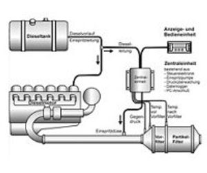 - Main function: Diesel fuel injection into the exhaust gas pipe (before filter) exhaust gas temperature increase to “filter-regeneration temperature”