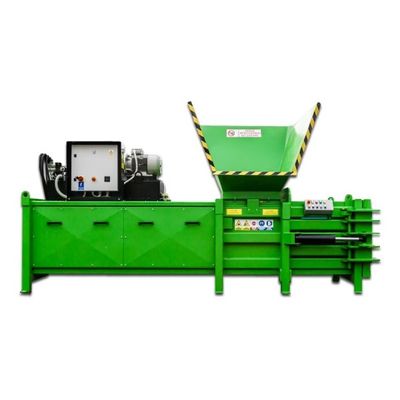 Semi-automatic baler horizontal press 400 Plus is suitable for processing the material to an average of 1 ton per hour. The machine is ideal for industrial plants producing high quality material in the relative small amounts. When the disc presses projecting entirely to the door 400 Plus press produces a very compact bales with dimensions and weight comply with the requirements of the mill. Bale can be completely discharged from the chamber after binding, facilitating switching between materials. Vertical binding system makes the machine is easy to use, quick to bind and suitable for setting along the wall.