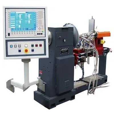 The machine is for production of standard and serial articles, especially for standard ground joints, ball joints, stop cock barrels, glass threads and flanges, forming of standard ground female joints on flasks, depending on the machine model, suitable for forming tube ends of borosilicate glass up to a dia. of 120 mm.