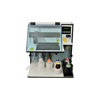 Once samples have been added manually, the instrument can run up to 12 different pre-programmed assays, for automating molecular based and Western Blot strip based assays. The instrument uses reversible peristaltic pumps to dispense reagents to the sample tray, and optionally from the software, the pumps can be reversed to save reagent back into the reagent bottles. The tray for the samples and membrane strips allows for rocking, tilting and level position during incubation. The operator interface is via a keypad and display. Once the samples have been added to the tray the assay is automated, and the developed strips in the tray can be removed for the analysis of the strips by eye, or using Bee`s AutoCam 48 to offer automated scanning, and interpretation using third party software.