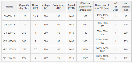 Guan-Yu - Model GY-500-1S - GY-1500-1S -Semi - Cover Rim Type Vibration Separator