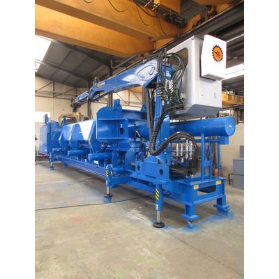 Hydraulic oil press installed on fixed bench. Designed for baling of scrap iron and metal. It is manufactured with diesel or electric motor. The machine is fitted with remote control. The press can be installed as an option with crane for self-feeding.