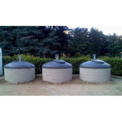 The container Eureka: instead of having an iron lid like the Ecodome container, the Eureka lid is made from high density polyethylene. The diameter is slightly smaller, so it occupies less space and it is less bulky also visually speaking. The concrete finish is smooth. Variants obtainable: washed concrete, fake stone, wood imitation.