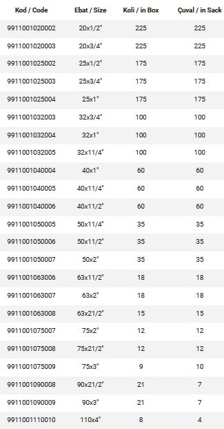 Male Coupling: Size 20x1/2". In Box 225 . In Sack 225.