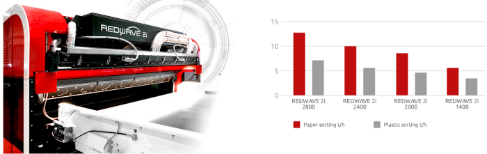 REDWAVE 2i the Intelligent Generation of sensor-based sorting. The REDWAVE 2i technology is based on machine learning and artificial intelligence. Different types of sensors are linked with this cutting-edge technology. REDWAVE sensor-based sorters are powerful sorting machines for the recycling and waste industry. The materials are scanned, and a signal is sent to the ejection units. High speed valves powered by compressed air eject the identified material. The number of activated valves per detected object depends on the size of the particle that is to be separated.