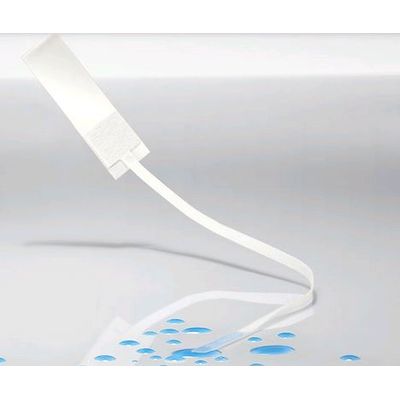 Optionally, the antenna can be extended with a paper tail to recognize small water quantities from a wider area where RF signals cannot easily penetrate. The paper tail absorbs water and transfers moisture level information via capillary action to the tag.