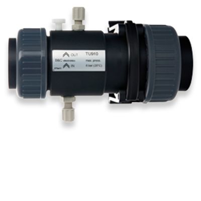 Turbidity measurement systems from our represented BC-electronics enables to measure both by immersion or directly on pipes. The system may have the following components: Controller TU7685 for probe connection, amplification and conversion of measurement, visualization and control of self-cleaning (optional). Turbidity sensor model TU810. Measurement up to 4000 NTU (NUT/mg/ppm). Amplified sensor for remote installation. Output 4-20 mA. Sumergible or for installation in line. Pressure max. 6 bar. Nephelometric measurement system by infrared light. With self-cleaning and fixing screw for aplicación sumergida. Sampling autonomous cell TU910 for bypass connection in pipe. Pressure max. 6 bar. Fitting connection ¼” o 4 x 6 mm PVC tubes.