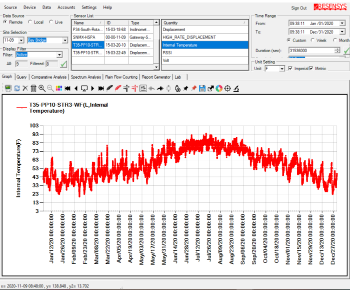 Wireless Humidity & Temperatue SenSpot sensor offers a breakthrough technology for real-time and long-term structural health monitoring. SenSpot uses Resensys’s proprietary sensing, scheduling and ultra-low power synchronization technology. SenSpot is designed to operate maintenance-free for more than a decade. After installation, SenSpot does not need calibration, battery replacement, or any other maintenance during its entire service life. Humidity and Temperature SenSpot sensor can be easily installed to monitor temperature and humidity around structural elements of bridges, buildings, etc.