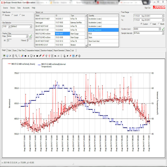 Wireless Strain SenSpot sensors offer a breakthrough technology for real-time and long-term structural health monitoring. SenSpot strain gauge uses Resensys’s proprietary sensing, scheduling and ultra-low power synchronization technology. SenSpot is designed to operate maintenance-free for more than a decade. After installation, SenSpot does not need calibration, battery replacement, or any other maintenance during its entire service life.