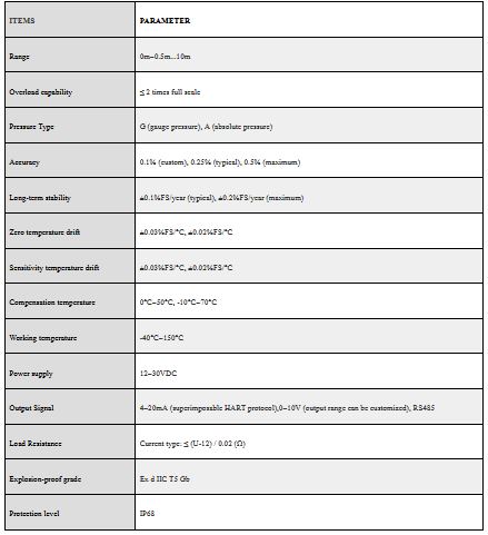 All welded structure. Non-contact measurement. High stability, long life. High temperature resistant medium.