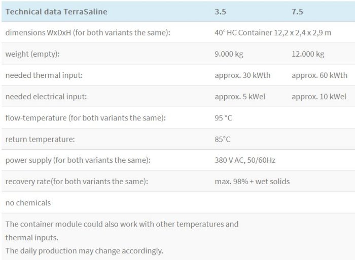 The TerraSaline 3.5 (7.0) is used for the concentration of liquids with low biology until ZLD. The extraction of solids can be done manually or automatically. The request for more water to be treated can be easily answered with the usage of additional TerraSaline.