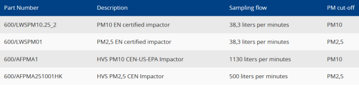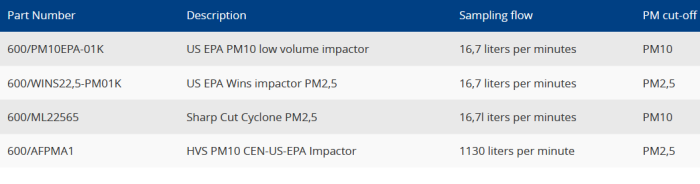 - Impactor PM2,5 2,3m3/h: 600/104.010.01