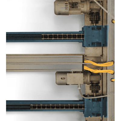 In the LinearBeam system, the chain is cleverly redirected by 180°, allowing the returning portion to be stored parallel to the transfer path. This innovative design enables double utilization of the available footprint space, making installation a breeze even in restricted and challenging environments. With its purely mechanical nature, the LinearBeam guarantees high dependability and a long lifespan. Moreover, it boasts an impressive energy efficiency rating of 80 to 90 percent, making it an environmentally and economically sustainable investment.