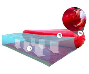 The Serpent™ Inflatable Flood Control Tube is an inflatable flood control system that deploys quickly and provides flood protection for up to 3ft in height. Each flood control tube incorporates an inflation valve that allows inflation of a 15ft or 30ft length of tube in 12-18 minutes. Individual inflated sections can be placed side by side and fastened together using the Velcro Tube Connector Sheet, to prevent water seepage and to create a contiguous flood control barrier.1) Pressure Creates Support: Flowing water over the skirt of the Serpent™ will serve as ballast, keeping the Serpent™ inflatable flood barrier positioned securely when protecting against flooding