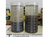 The Settleometer shows the solids liquid separation capability in the secondary clarifier. Sludge must separate from the liquid for settling to occur. Settling of sludge in the clarifier is a critical part of the activated sludge process. Poorly settling sludge is a strong indication of process problems and solids loss in final effluent. The scale printed on the Settleometer measures how far a sample has settled. “SSV” is the abbreviation for Settled Sludge Volume. “%” shows the settled sludge volume as a percentage of the entire sample. The sample to the right has a SSV of 350 which is also 35% of the total sample volume.