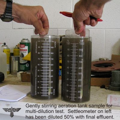 Slow settling sludge can be caused by high density sludge or high concentrations of sludge. The Multi-Dilution Test is performed with two Settleometers.