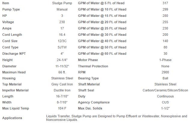 3 HP/ 2.2 KW, 220-400Volts, Phase: 3, 3" or 4" Discharge, 16` Cord Length, Manual Operation, Solid Pass: 1 4/7".