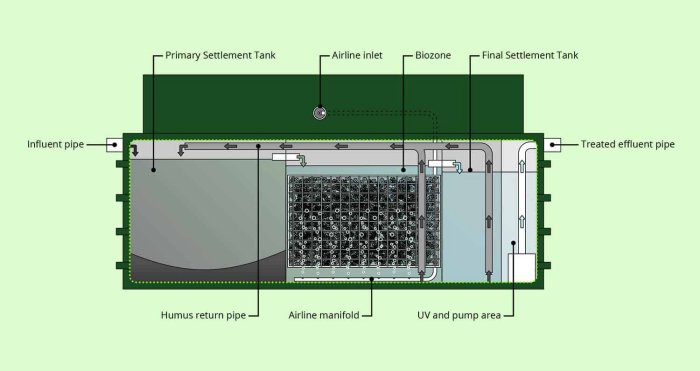 - integral discharge pumps (as required) and UV (no separate chamber)