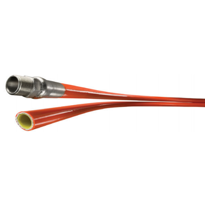 Piranha Sewer & Jetting/Lateral Line Hoses are constructed of high tensile one or two synthetic fiber braids with a standard abrasion resistant polyether-urethane cover. The inner tube is constructed of a yellow polyolefin (2500 & 3000 PSI) or a yellow seamless thermoplastic (4000 & 5000 psi).