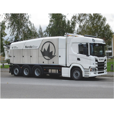 The NordicStar is a new water recycling vehicle based on the well-proven technologies of the KAISER group specially adapted to the rough conditions in the Nordic countries. Thanks to the combined jetting and suction boom KSR73 both hoses can be conveniently placed at the same spot, thus facilitating work and making the working process more efficient.