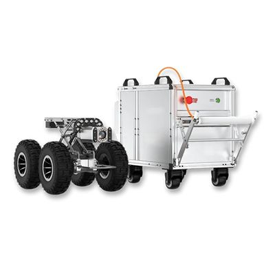 Fully equipped sewer crawler system for conducting both visual and 3D (Lidar) inspections in sewer mainlines, pipelines and storm drains. The crawler is able to start inspecting pipes as small as 8 inches and up thanks to the design of the tractor and the interchangeable wheel sets. Capture high-quality footage and focus on fine details during inspections with the pan and tilt camera head that is equipped with optical zoom and focus function. For inspections that require a NDT examination a special Lidar head paired with a camera are available to scan the internal pipe and record the 3D profile of the pipe.