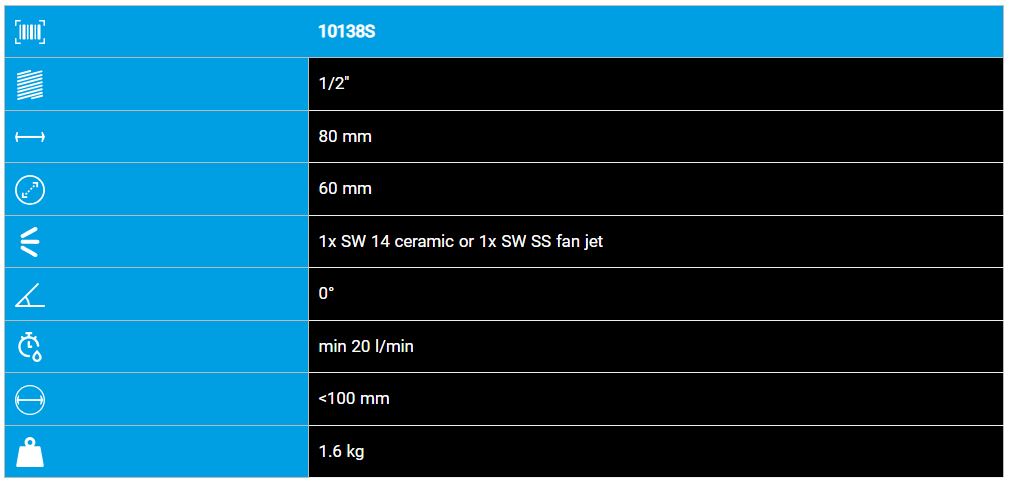 - Threaded, replaceable ceramic nozzle insert or fan jet