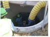 Sewer Shield® 100 is supplied in either a pre-measured one-gallon pack or as a standard three-gallon pack. Pour the contents of Part B into Part A and mix thoroughly with either a low speed drill (700 rpm) or a bucket mixer to a uniform consistency for approximately one minute, then add the pre-measured bag of Sewer Fill and mix again, making sure the sides and bottom are scraped. If a mixing paddle is too small, it will not give a uniform mix and an incomplete cure will result together with wet spots. Over mixing with a high-speed drill will shorten the pot life as well as introduce excess air into the mix.