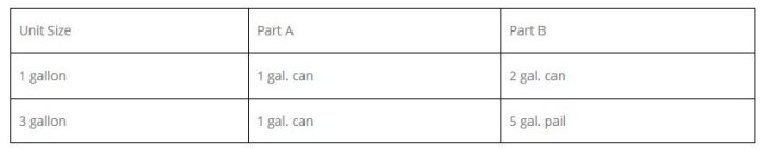 Packaging consists of premeasured unitized containers of Hardener Part A and Resin Part B. Remix Part A and B before combining. Completely empty contents of Hardener Part A into Resin Part B. Using a slow-speed ½-inch drill motor affixed with a "Jiffy" type blade, mix three to five minutes until thoroughly blended.