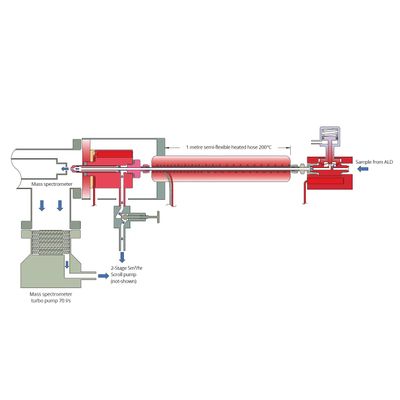 For sampling ALD processes with options from 1-5 mbar or 5-50 mbar. Heated to 200°C. Air actuated heated (200°C) isolation ‘ALD’ valve included, not shown.