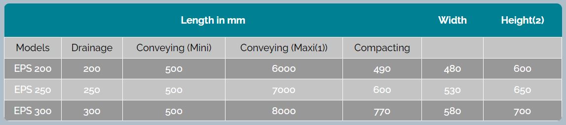 At the screw bottom, a drainage zone option can be fitted in order to collect the water extracted from the solid waste, especially when the unit is installed inclined.