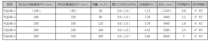 Design inlet pressure: 0.2-0.4MPa. Working pressure: ≤0.6Mpa. Inlet water quality: SS = 15-30mg / l. Outlet water quality: SS≤5mg / l. Pressure loss: ≤0.1Mpa. The Backwash water flow: 35-55m³ / h Backwash water consumption:
