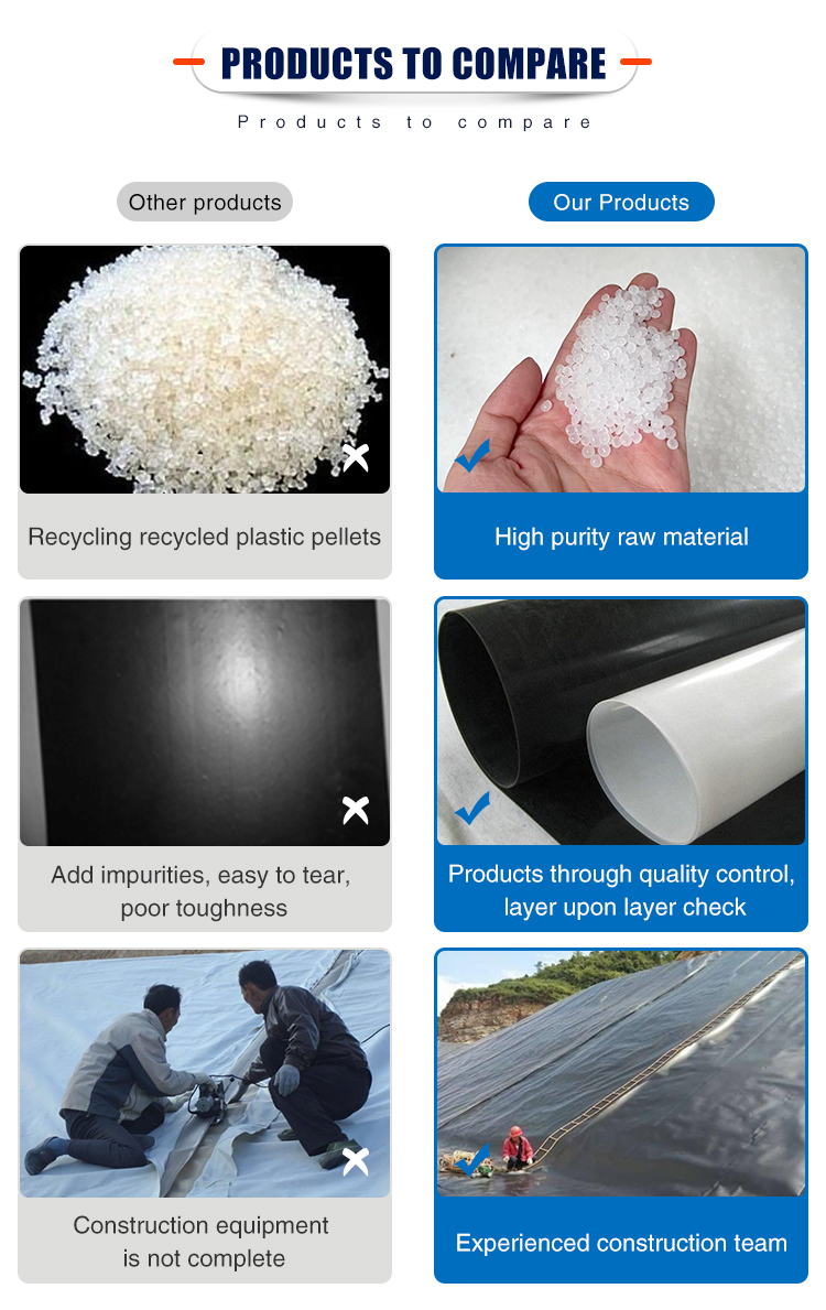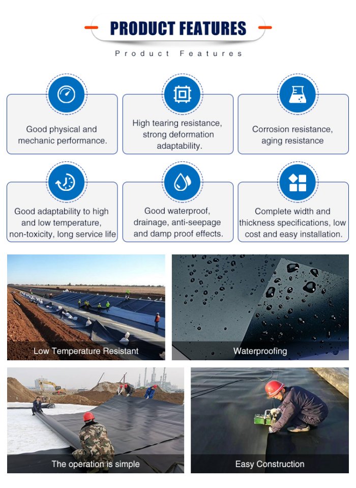 We supply all kinds of geomembrane with factory price,Geomembrane is produced from best quality High Density Polyethylene (HDPE) material by film-blowing process, adding carbon black, antioxidant, ant