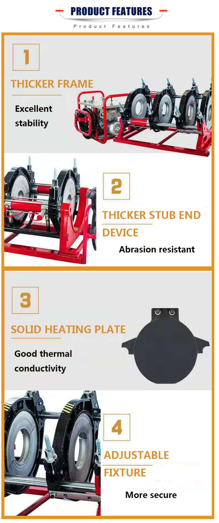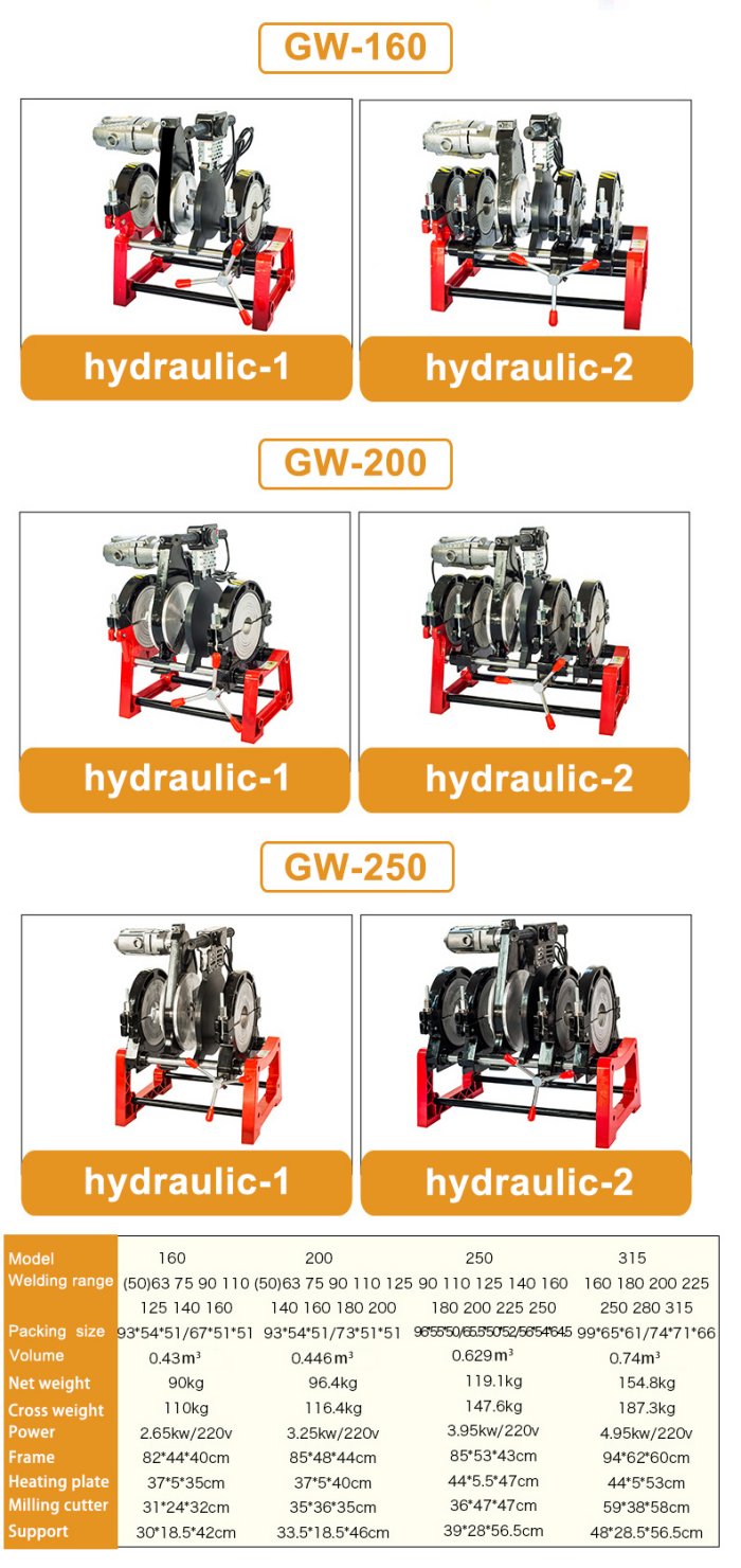 Hot welding machine is automatic butt joint, light, firm, easy to carry and other characteristics of butt joint machine, used for PE, PP and other plastic pipe and pipe welding, widely used in high-pressure water, gas, chemical and other liquid pipeline welding.