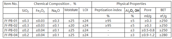Also known as alumina monohydrate, boehmite, English name: Pseudo Boehmite, AlOOH·nH2O, n=0.08~0.62, non-toxic, tasteless, odorless, white colloid (wet product) or powder (dry), with high crystal phase purity, good peptization performance, strong adhesion, high specific surface, large pore volume, etc., and its hydrated state is a thixotropic gel.