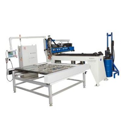 Automatic switching operation table, connected with the glue control system, automatic induction operation process, the glue operation is not stopped, which is beneficial to shorten the production beat, improve labor efficiency, and reduce labor intensity.