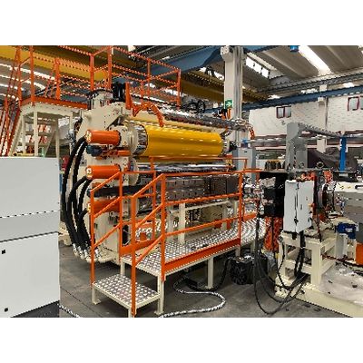 Sizes of BG Plast manufacturing lines and calenders vary according to the final product required by the customer. The width range of calender roll stacks goes from 450 mm to 8000 mm. Thanks to different type of feed-block configurations, BG Plast has faced several co-extrusion applications using up to 7 extruders.