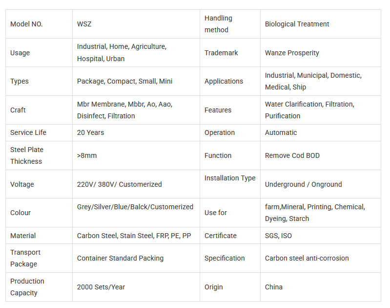 Brand: WanzeThe integrated sewage treatment equipment integrates the primary sedimentation tank, I and II level contact oxidation tanks, secondary sedimentation tank and sludge tank into one device, and carries out aeration in the I and II level contact oxidation tanks, so that the contact oxidation method and the activated sludge method are effectively combined, saving the time of hiring people to design sewage treatment processes and building infrastructure equipment.